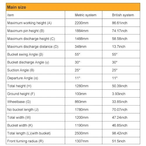 Question 2: What are the dimensions and height specifications of the mini skid steer loader?